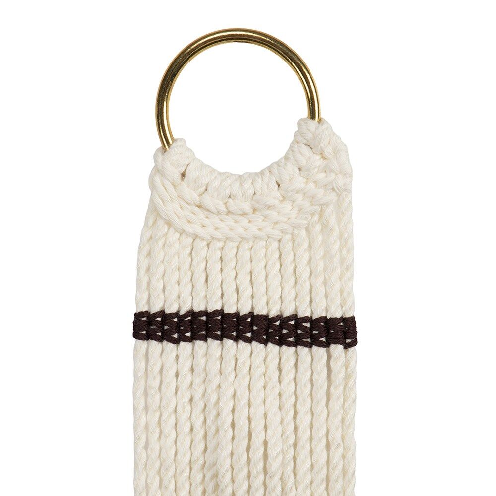 Durable and breathable corded ringer girth designed for stock horse work, campdrafting, and everyday riding. Made from 15 strand white acrylic cord for strength and airflow, with solid brass rings for secure attachment. Features centre dees for easy connection of a breastplate or flank girth.