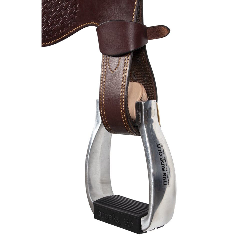 Prioritize rider safety with the innovative Fort Worth Safety Oxbow Stirrups. These stirrups are designed to prevent dangerous situations where riders might get hung up, making them essential for solo riders and ranch hands alike. The key safety feature is a quick-release hatch that tips open if a rider loses their seat, allowing for swift disengagement. Crafted from lightweight yet durable aluminium, these stirrups come with oxbow wear leathers for added comfort and a rubber tread for secure footing. With a 3-inch top and approximately 5-inch foot bed, these stirrups offer ample support while maintaining crucial safety features.