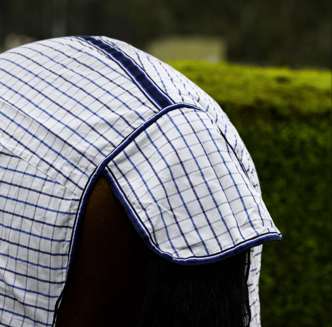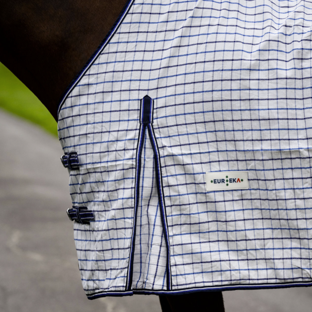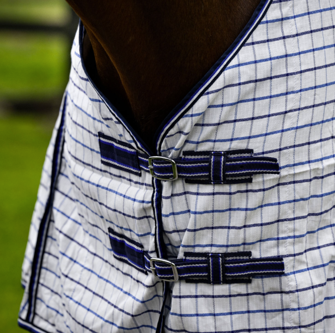 These sunmmer horse Rugs are made from 280gsm ripstop 100% polyester material. The ripstop grids provide extra fabric strength to this fully bound rug with taffeta lined chest, secure single chest strap system, shoulder gussets, rump darts, removable leg straps, large tail flap & fleece wither protector.