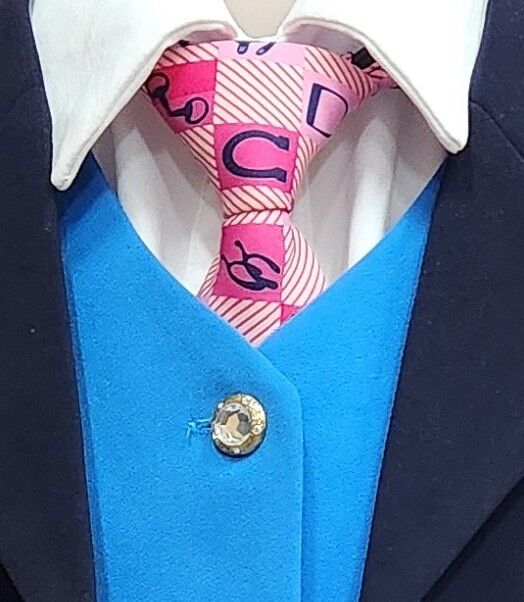 Girls show tie, Pink with navy shoes, bits and stirrups.