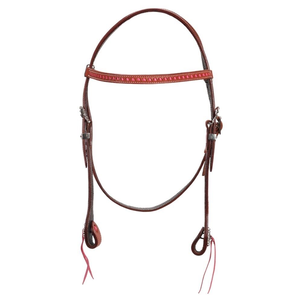 Introducing Talisa! This beautiful headstall is part of a matching ensemble complete with a breastcollar. Featuring high-quality leather adorned with eye-catching pink buckstitch detailing. The Talisa design combines durability with elegance, making it suitable for both show rings and everyday riding. Reflecting Fort Worth Saddlery's commitment to quality, this set offers riders a stylish and functional option that stands out with its unique pink accents.