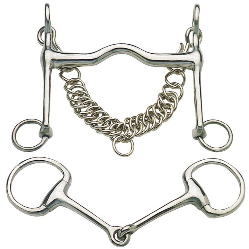 Wyemouth set with a fixed bit and medium port. Eggbutt bradoon to complete the set.